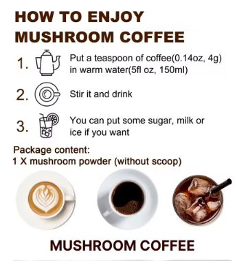 Enjoy smooth, creamy coffee ☕ powered by superfood mushrooms 🍄. With 48 mg caffeine ⚡, no jitters, and zero sugar, it supports gut health, immunity, and all-day focus. Made with organic Arabica coffee, MCT oil, and a powerful mushroom blend—your daily boost for a healthier lifestyle.